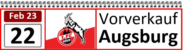 Ab Dienstag, 14. Februar 2023, 10 Uhr, können wir für das Derby gegen Borussia Mönchengladbach (31. März - 2. April 2023, noch nicht terminiert) Tickets zum entsprechenden Tageskartenpreis im FC-Ticketshop bestellen. Eine zweite Verkaufsphase startet um 16 Uhr.