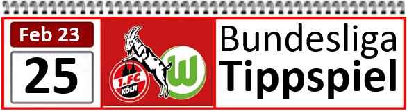 19. Spieltag: Sa., 27.1.2024, 15:30 Uhr, VfL Wolfsburg - 1. FC Köln