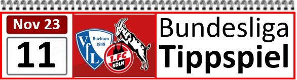 Tagessieger in unserem Bundesliga-Tippspiel wird mit 26 Punkten Simon (Geissbock) Schüttler vor Michael (Psycho) Schnepper, der 21 Punkte ertippt. Dritter Sieger mit 19 Punkten wird Alfred (Speedy) Kreft. Herzlichen Glückwunsch! Im Tippspiel geht es nach der Länderspiel-Pause weiter am Freitag (24. November 2023) mit dem Heimspiel gegen den FC Bayern München. Um 20.30 Uhr beginnt die Partie im Rhein-Energie-Stadion.